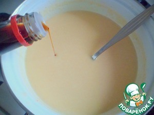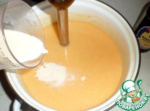 Следующим этапом влить теплые сливки, у меня домашние, кипяченые, еще пробить, чтоб все соединилось.
