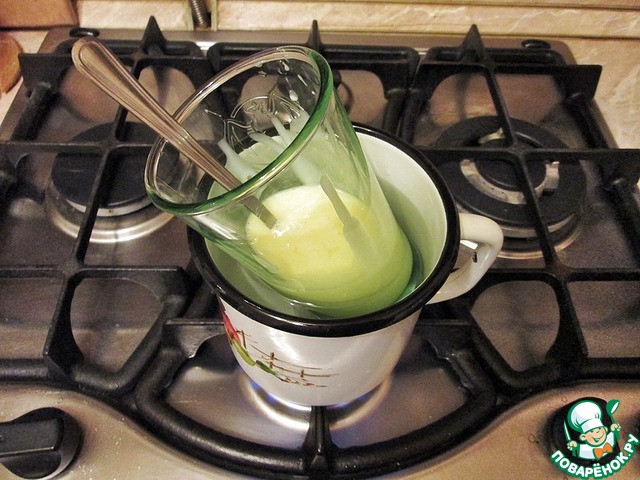 Также подготавливаем все для водяной бани, в моем случае - кружка, проставка, стакан. -