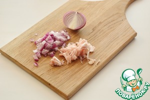 Сырокопченый бекон и лук нарежьте мелко