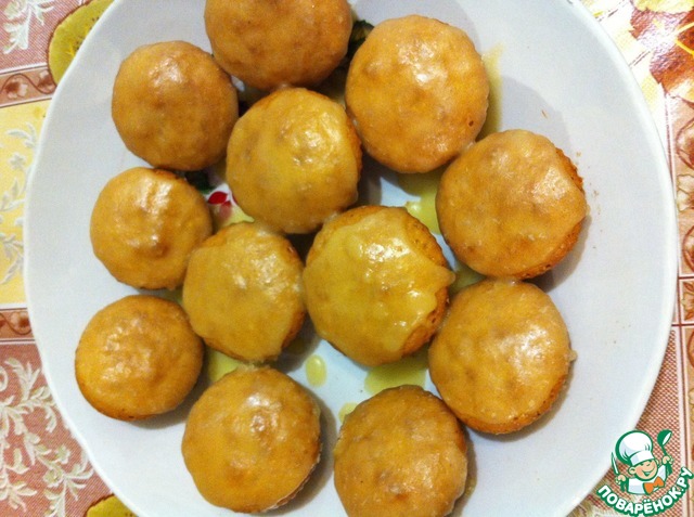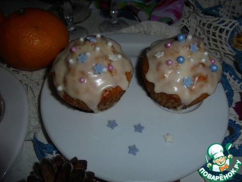 Для глазури выжать сок половины мандарина, добавить сахарную пудру, приготовить глазурь до желаемой консиситенции.