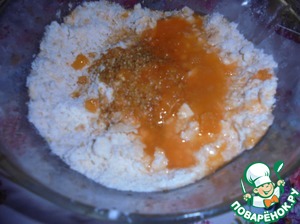 В миску всыпать просеянную муку, манную крупу семрлина, разрыхлитель и тротстниковый сахар. Перемешать.