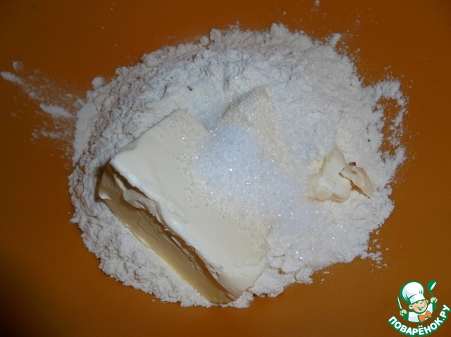 - Масло сливочное (75 г в тесто, 30 г в начинку) — 105 г