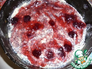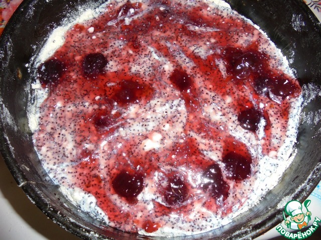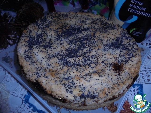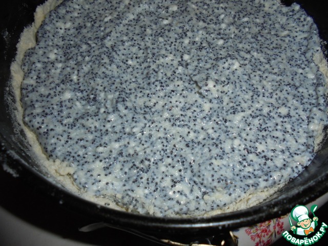 На маковую начинку выложить джем, равномерно распределить по поверхности пирога.