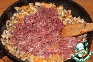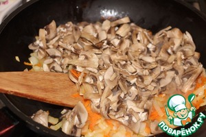 • Добавить резаные шампиньоны, жарить еще 3 минуты.