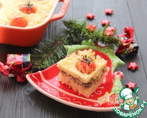 Скажете запеканка это не праздничное блюдо, там более рисовая!? Ну это как сказать. Пожилые люди и детки будут рады такой запеканке. Да, это не селёдка под шубой, но всегда можно сказать, что это мясо под шубой. Да и салаты с холодцом в длинные новогодние праздники иногда хочется разбавить уютным нежным блюдом. Праздники ж длинные! Приготовим?