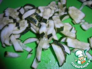 Яблоко очистите и нарежьте на тонкие дольки. Сразу же сбрызните оливковым маслом.