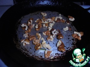 Разложите салат по порционным тарелкам. Полейте заправкой и посыпьте орешками и сушеной клюквой. Приятного аппетита!