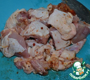 Замариновать всю курицу в аджике на 2 - 12 часов. -