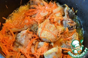 Но для меня плов - рис, лук, морковь, БАРАНИНА, чеснок, зира. Так уж приучили.