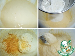 В два три приема добавить просеянную муку с разрыхлителем и солью.