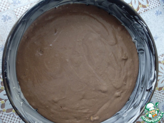 Тесто выливаем в форму смазанную сливочным маслом. Выпекаем при 180° в духовке до сухой спички.