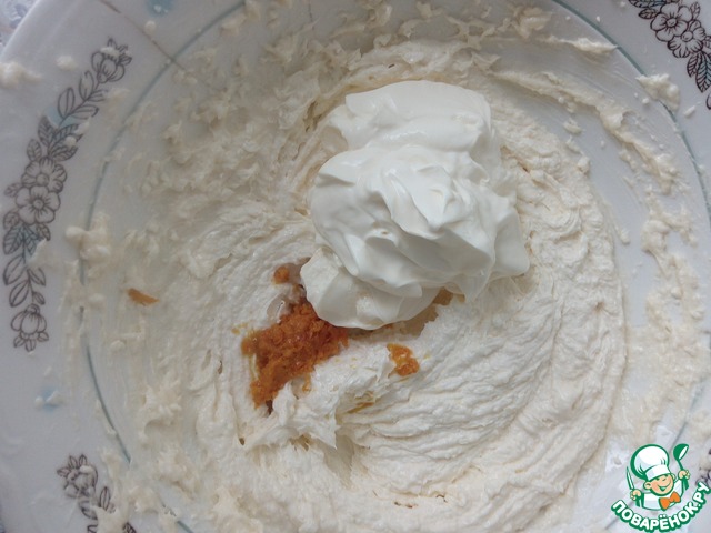 Затем вводим сметану и цедру. Взбиваем еще около 5 минут.