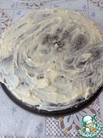 Основу делим на 2 части и обильно промазываем кремом. Украшаем по желанию.