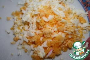 Сварить яйца и потереть их на крупной терке.
