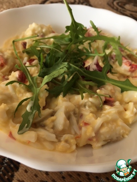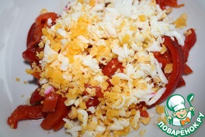 Болгарский салат, оригинальное название "салата от печени чушки, варени яйца и сирене". Болгары называют его"разядка" Слово "разядка" переводится как "салат для возбуждения аппетита, разъедка". Очень вкусный и легкий в приготовлении. С благодарностью Илье Ангелову за рецепт.