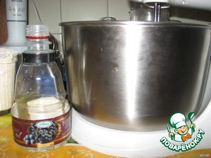 Всыпаем в тесто муку и тщательно перемешиваем.