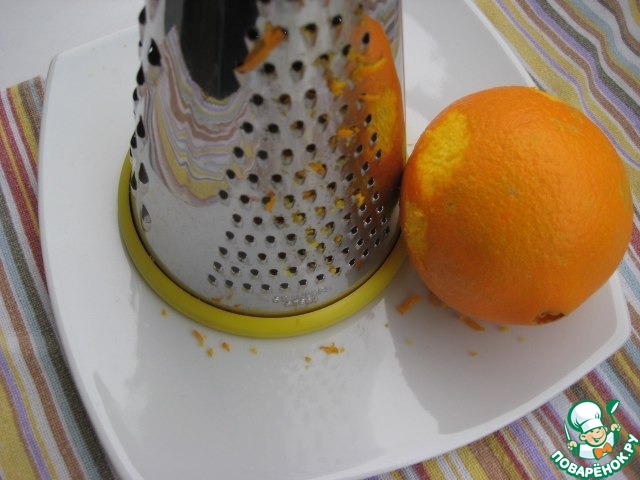 Натереть на мелкой терке цедру апельсина, я взяла 1/3 от целого. |