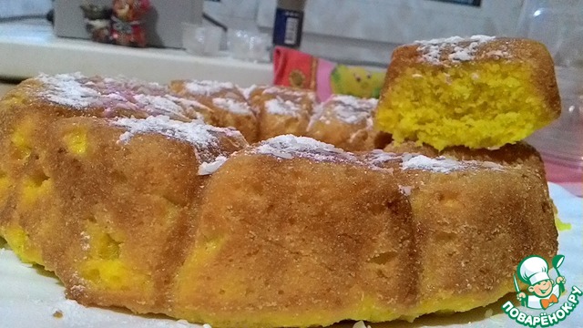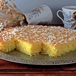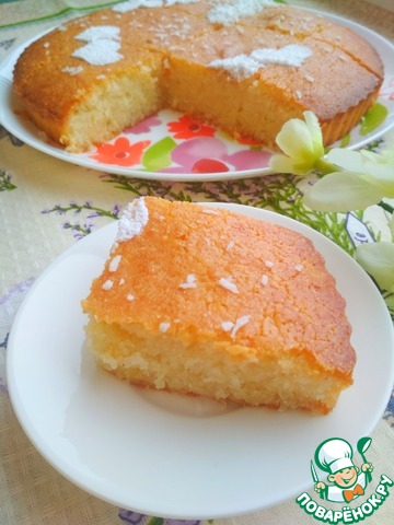 Вкусный, рассыпчатый пирог на кефире с нежным вкусом кокоса, пропитанный сиропом! Готовится этот пирог на 1-2-3. В тесто я добавила куркуму для придания нежно-желтого цвета.