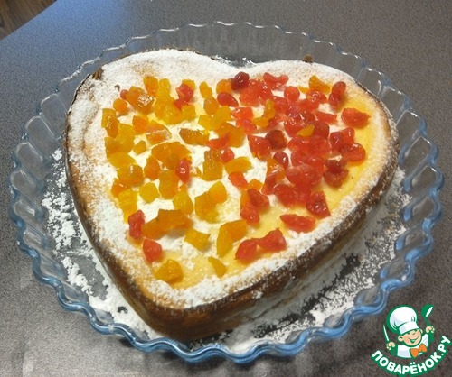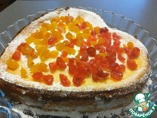 5. Утром декорируем наш пирог как нам заблагорассудится. Пирог слегка оседает и получается такая чаша. Можно выложить ягоды, сухофрукты. Всё что вашей душе угодно