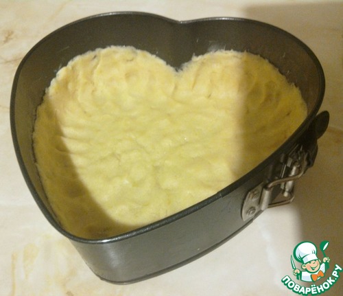3. Выложите в форму, сформируйте бортики. Поставьте выпекать в, предварительно разогретую до 180 гр., духовку.