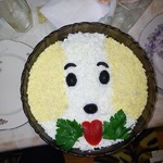 Как потом увидели на "общем семейном собрании", ещё двое приглашённых позаимствовали этот рецептик и сделали свои вариации "собачек". Оформление у всех было разное, выкладывали рыжую собачку из варёной моркови.