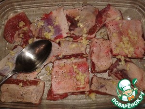 • 4 зубчика чеснока очистить и пропустить через пресс на мясо