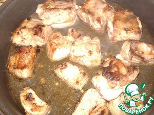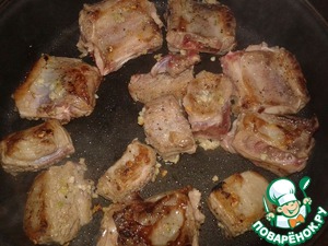 • Выкладываем на сковороду и поджариваем до румяной корочки с двух сторон минут по пять для каждый стороны. При этом говяжьи ребра переворачиваем