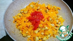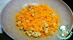 Добавляем натертую на крупной терке морковь, продолжаем обжаривать.