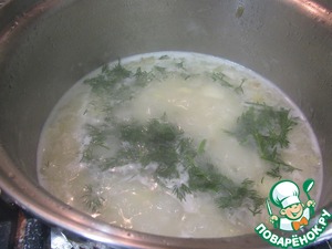 • Добавляем зелень: укроп и зеленый лук. Провариваем 5 минут.