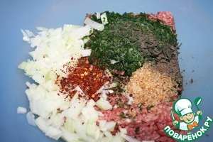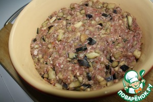 Смешать с фаршем, солим и перчим по вкусу. Добавим ложку масла. -
