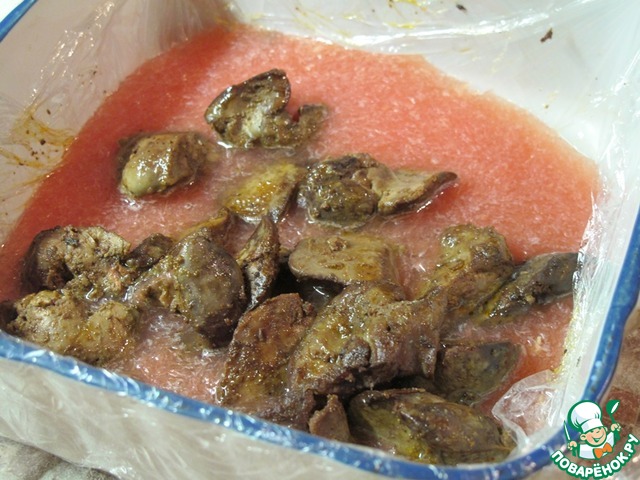 Рецепт «Куриная печень в грейпфрутовом желе»: