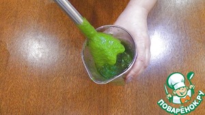 Делаем пюре из шпината с помощью погружного блендера, добавив масло.