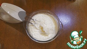 Для крема - холодные сливки взбиваем с сахаром и ванильным сахаром. Добавляем творожный сыр я беру самодельный, рецепт здесь http://www.povarenok .ru/recipes/show/140 842/. Размешиваем.