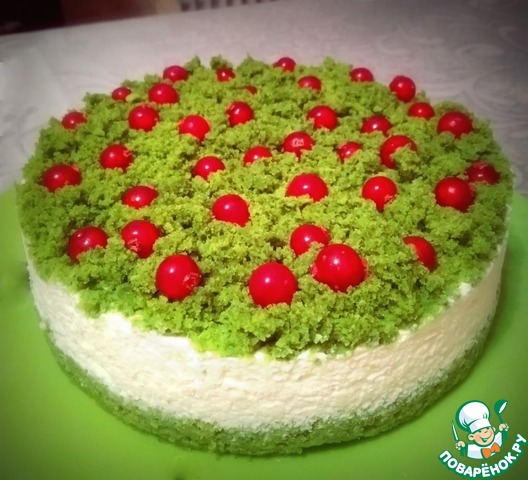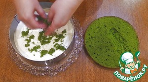 Сверху крошим оставшийся корж (я беру только зеленую часть, без корочки).