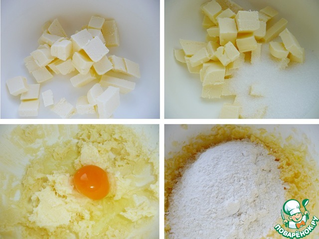 • Для приготовления теста, нарезать масло кубиками (оно не должно быть мягким и не слишком холодным),