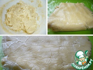Готовое тесто выложить на пищевую пленку, упаковать и убрать в холодильник на 30-40мин.