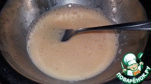 Взбиваем вилкой яичную смесь, добавляя по ложке чуть подостывший бульон.