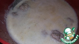 Бульон с оливковым маслом довести до кипения. Из фарша скатать комочки, покидать их в кипящий бульон. Варить около 50 мин на среднем огне.