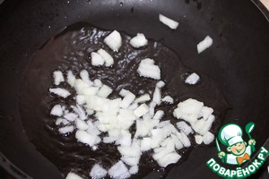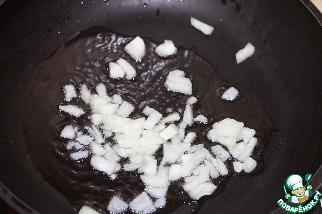 • На растительном масле слегка обжарить мелкорубленный репчатый лук