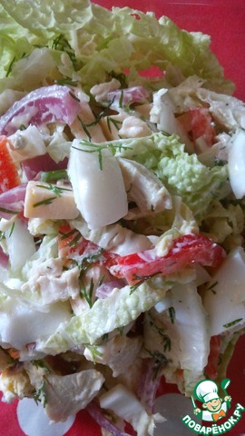 Очень вкусный и простой в приготовлении салат. Сочетание вкуса курочки, сыра, яиц, помидоров и пекинской капусты Вас очень обрадуют! Салат получается очень легким и насыщенным.