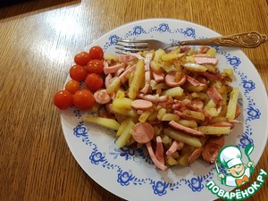 Картошка жареная. При упоминании этого блюда, наверное у всех потекут слюньки. Да и дети обожают это блюдо. Кто-то не любит лук в любом проявлении. Гости на пороге, а в холодильнике на закуску 2 сосиски. Хочу предложить свой вариант жареной картошки без лука, который можно использовать и как второе блюдо для семьи и как закуску. Ну и конечно всем не любителям лука посвящается. Не стоит переживать насчет чеснока и его запаха при общении. Я уверяю, никакого запаха от Вас не будет.
