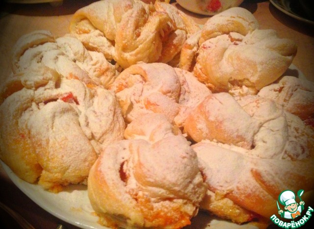 Готовые булочки остудить, посыпать сахарной пудрой.