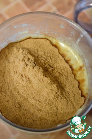 Блендером измельчить молоко, грушу, финики и имбирь. Всыпать кэроб и ещё раз измельчить.