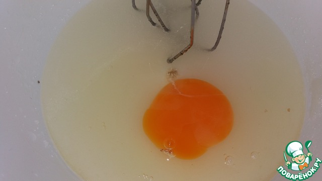 • Взбиваем масло с сахаром, добавляем воду, а затем яйцо.