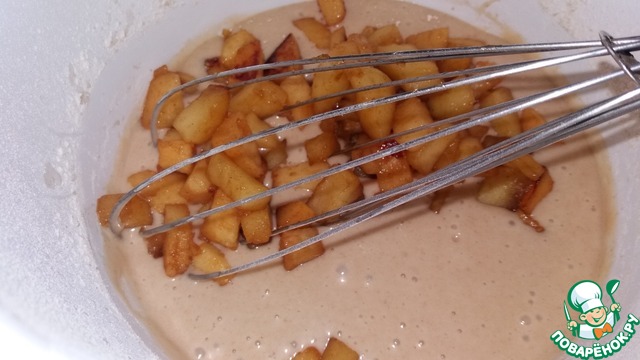 • Смешать муку с пекарским порошком и корицей. Постепенно добавлять в смесь, замешивая тесто.