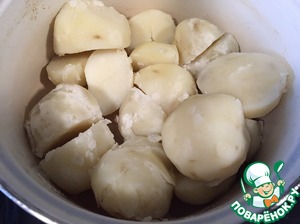 Картофель чистим и отвариваем до готовности. Снимаем с плиты, сливаем воду.