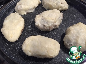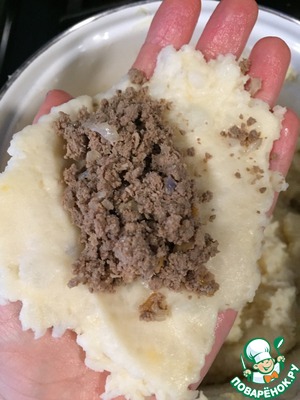Теперь формируем зразы. Лучше готовить мокрыми руками, тогда картофельное тесто не будет прилипать к рукам.