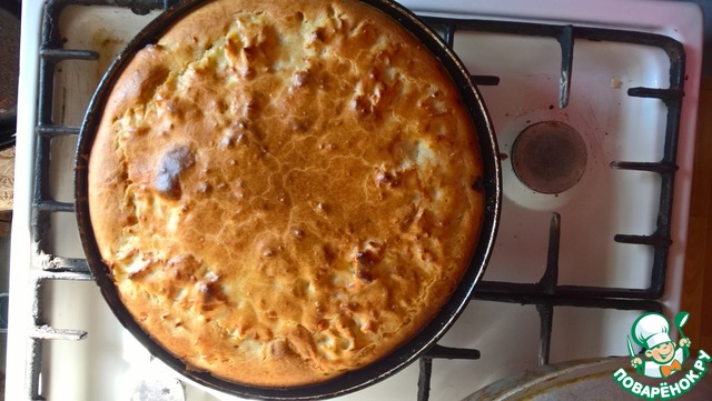 А теперь секрет)) Тесто я использовала из своего рецепта кекса по-турецки, просто убрала сахар и ванилин и удвоила порции для большой сковороды)) Тесто замечательное, а главное, долго не черствеет -