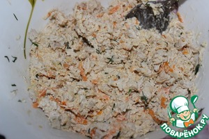 Добавить к полученной смеси майонез и черный молотый перец. Все перемешать.