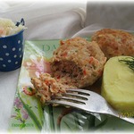 Сформировать шарики, хорошо обвалять в панировочных сухарях и выложить на разогретую сковороду с небольшим количеством растительного масла. Слегка обжарить на среднем огне с одной стороны без крышки, аккуратно перевернуть и обжарить с другой стороны. Накрыть крышкой. Через пару минут подавать.